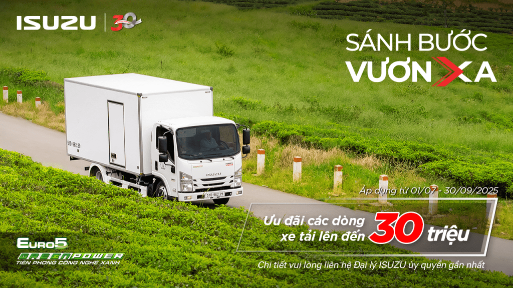 Từ ngày 01/04/2025 đến 30/06/2025, ISUZU Việt Nam triển khai chương trình ưu đãi đặc biệt dành cho dòng xe tải đạt tiêu chuẩn khí thải Euro5 với mức hỗ trợ tài chính lên đến 30 triệu đồng/xe.